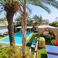 הבריכה מחוממת ומקורה חלקית בחורף. הבריכה הגדולה ביותר בצימרים בחד נס